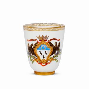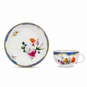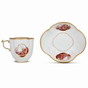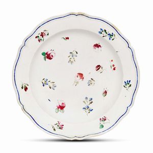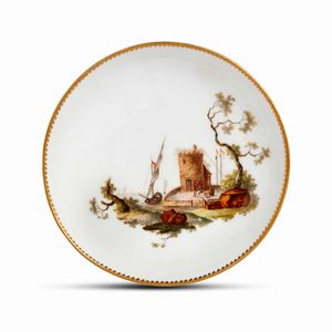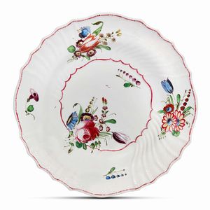 PIATTINO DA TAZZINA, SAVONA, METÀ SECOLO XVIII in maiolica dipinta in policromia di forma circolare con [..]