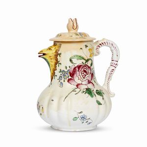 CAFFETTIERA, LODI, MANIFATTURA ANTONIO FERRETTI, 1775-1780 in maiolica policroma, corpo piriforme con motivo [..]