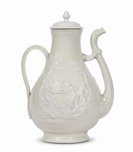 CAFFETTIERA CON COPERCHIO, DOCCIA, MANIFATTURA GINORI, 1790 CIRCA in porcellana bianca con decoro a bassorilievo [..]
