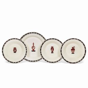 VASSOIO CIRCOLARE E TRE PIATTI, NAPOLI, MANIFATTURA FERDINANDO DEL VECCHIO, 1820 [..]