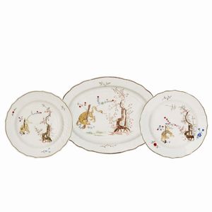 COPPIA DI PIATTI E VASSOIO, GERMANIA, MANIFATTURA DI MEISSEN, SECOLO XVIII