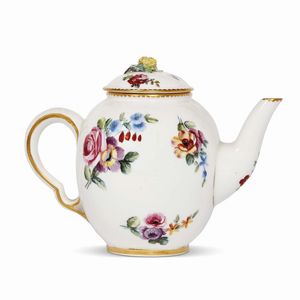 TEIERA, MANIFATTURA DI SÈVRES, 1765 in porcellana tenera dipinta in policromia e oro, corpo ovoidale [..]
