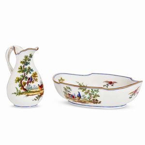 VERSATOIO CON BACILE, MANIFATTURA DI SÈVRES, ETIENNE EVANS, 1759-1762 CIRCA in porcellana tenera dipinta [..]
