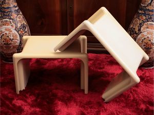 h cm 33x51x40 Anni Settanta realizzati in plastica bianca, impilabili, utilizzabili anche come sgabelli, alcuni [..]