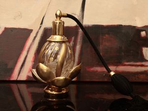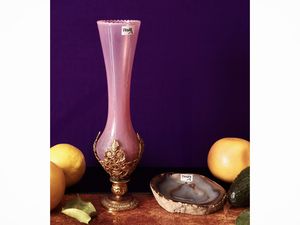 h cm 17 Firenze, XX secolo realizzata in vetro a torchon su base modellata come fiore, lumeggiata in oro, lievi [..]