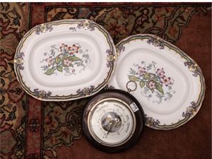 h cm 20x23x23 e cm 24x41 (2) una biscottiera con vassoio en epndant ed un grande vassoio dipinti con motivo vegetale [..]