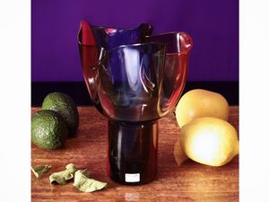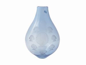 H cm 29,5 Murano, 1960 ca. in vetro azzurro con conchiglie di diverse forme e dimensioni incise alla mola. Etichetta [..]