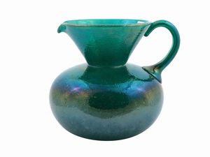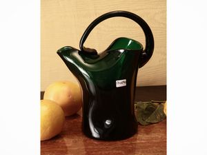 H cm 21 Murano, 1936 ca. in vetro pulegoso verde e manico applicato a caldo.