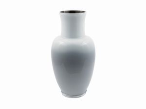 h cm 17,5 Murano, 1970 circa a losanghe azzurre e lattimo. Reca firma incisa Seguso Murano '66 sotto la base.
