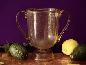 h cm 15 Murano, Anni Ottanta realizzato nei toni dell'azzurro, bordo con applicazione in vetro bianco