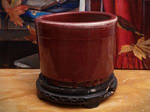 h cm 19, diam cm 26 Cina, XIX secolo realizzato nel color rosso sangue di bue, su base in tek