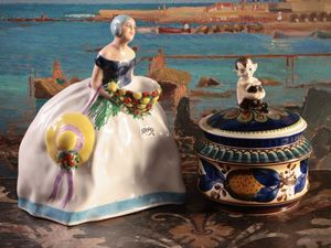 h cm 22 e cm 17 (2) Francia, inizio del XX secolo realizzato a foggia di dama, abbinato ad una scatola in ceramica [..]