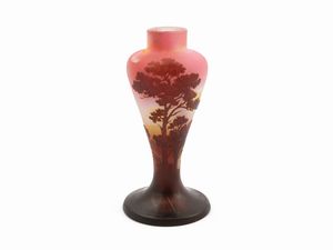 h cm 50 con decoro inciso all'acido di paesaggio con alberi d'alto fusto nei toni dal bruno all'arancio. Firma [..]