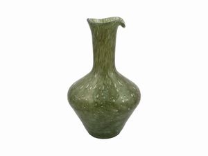 h cm 29,5 Murano, 1990 circa sui toni del verde e macchie multicolore diffuse, anse applicate a caldo. Reca scritta [..]