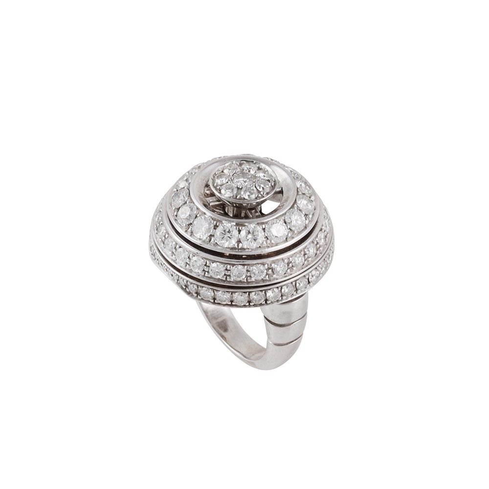 in oro bianco e platino con cupola formata da anelli girevoli in brillanti del peso complessivo di 3 ct ca., gr. 32,7. Misura 18,5 Firmato: Piaget  Numerato: D06703
