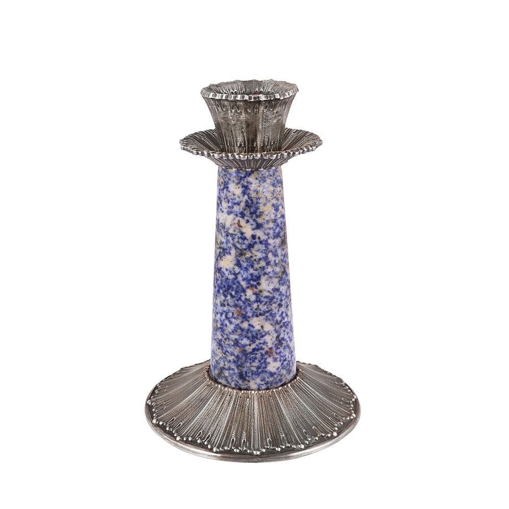 con fusto in sodalite, base e coppa con motivi a 'rouches', in argento 925, gr. complessivi 560 ca. Corredato da custodia originale. Dimensioni 11 x (h) 17 cm ca. Firmato: Gianmaria Buccellati