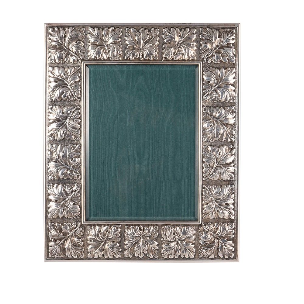 a forma rettangolare, in lastra d'argento 925, sbalzata con foglie d'edera. Retro con rivetti in argento a forma di fiore, gr. netti 340 ca. Corredata da custodia originale. Dimensioni 28 x 23 cm ca. Firmata: Gianmaria Buccellati