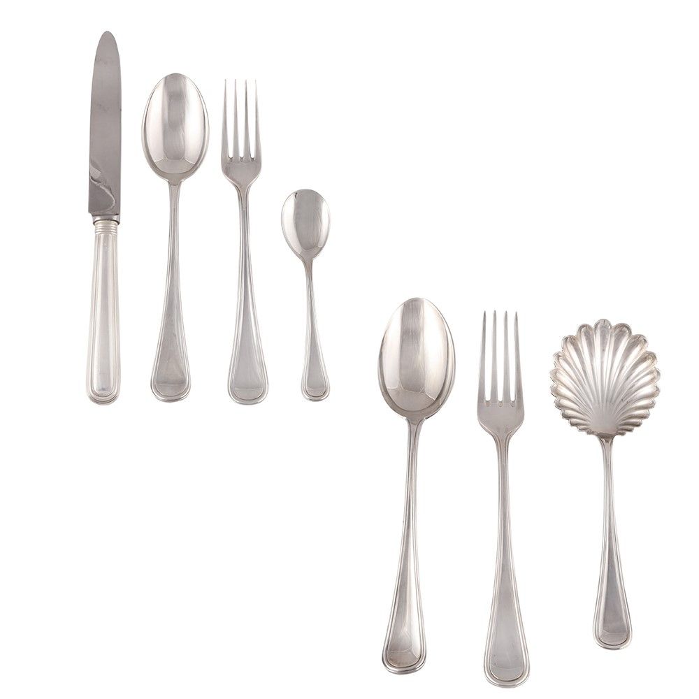 in argento composto da 146 pezzi, manici lisci con bordura gradinata, gr. complessivi 6.000 ca. Numerario: 1 AL (A. Cesa & C. - Alessandria)