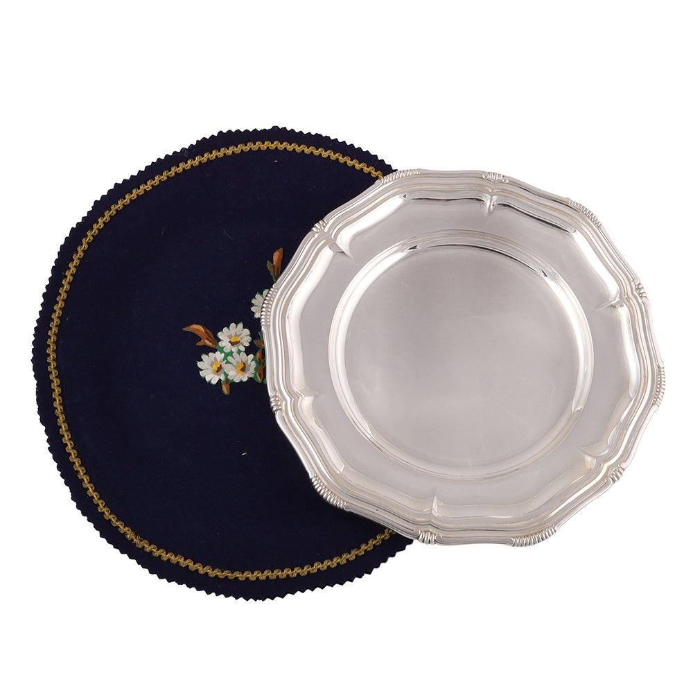 in argento, a corpo liscio con tesa gradinata e bordura godronata, gr. complessivi 2.580 ca. Corredati da custodie in panno. Diametro 20 cm ca. Numerario: 20 AL (Ricci & C. s.p.a. - Alessandria)