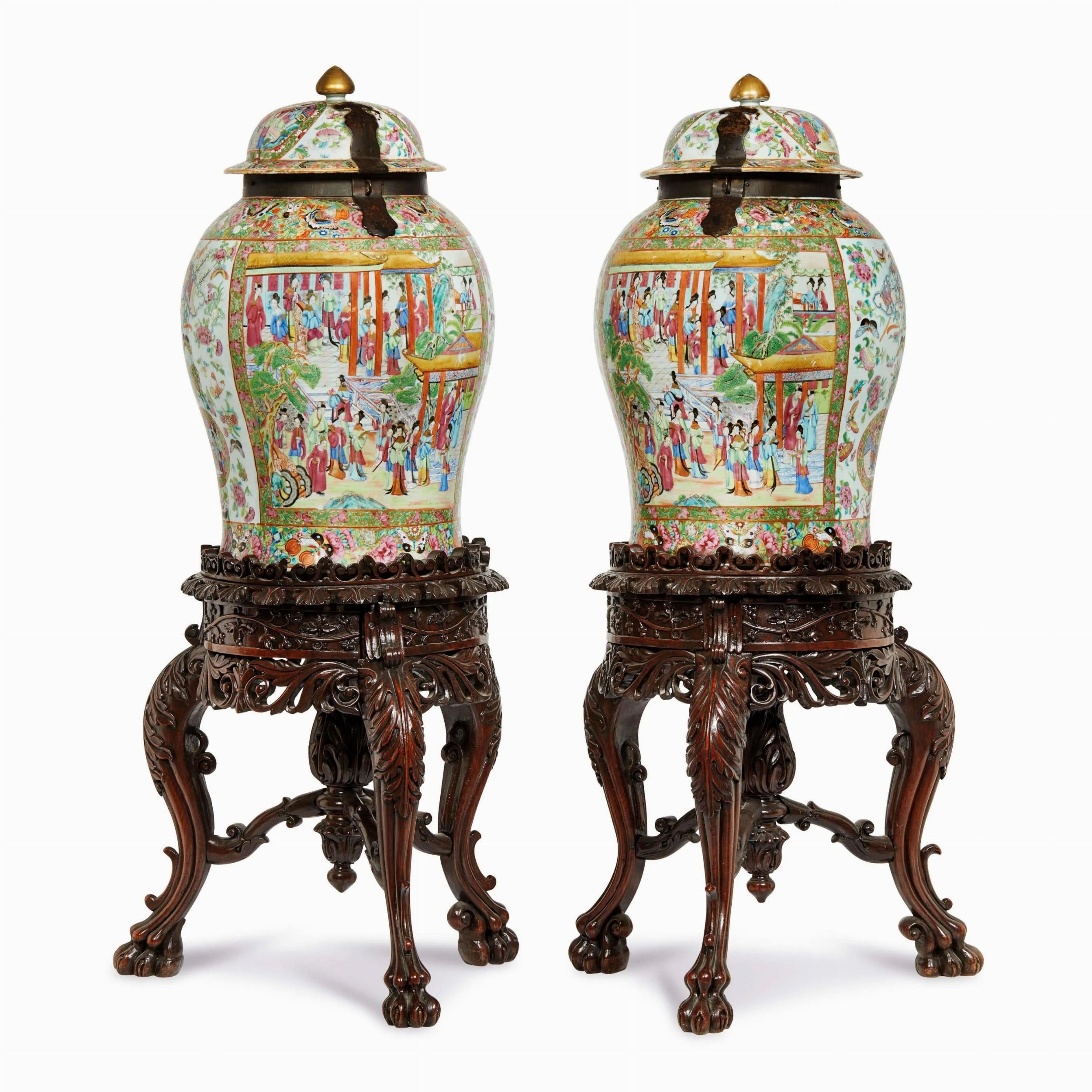 COPPIA DI VASI CON COPERCHIO CANTON, CINA, SECOLO XIX