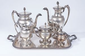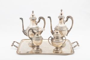in argento, Peso kg 4,380 h max cm 32,00 Italia, secolo XX composto da teiera, zuccheriera, lattiera e caffettiera [..]