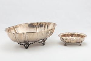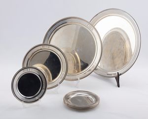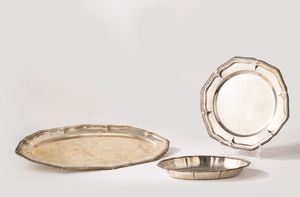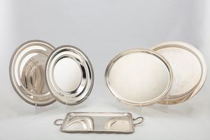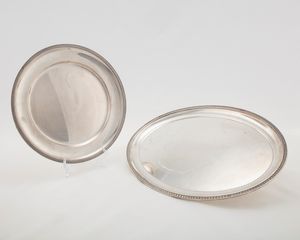 in argento, Peso kg 1,696 Italia, secolo XX di forma circolare (d cm 30,50) e ovale (l cm 43,80), con bordo decorato [..]