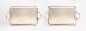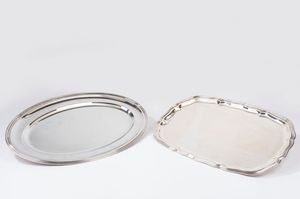 in argento, Peso kg 2,880 cm 52,00x35,00, 46,70x35,00 Italia, secolo XX uno di forma ovale, l'altro polilobato [..]