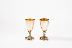 in argento e vermeil, Peso g 533,40 h cm 16,00x8,00 Italia, secolo XX il fusto sbalzato con motivi floreali e [..]