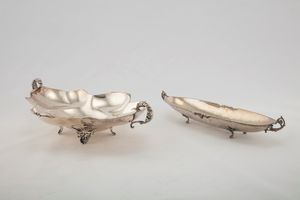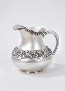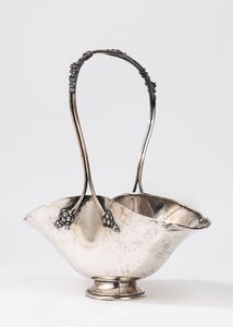 in argento, Peso g 360,00 cm 23,50 Italia, secolo XX con bordo traforato, decorato con grappoli d'uva su quattro [..]
