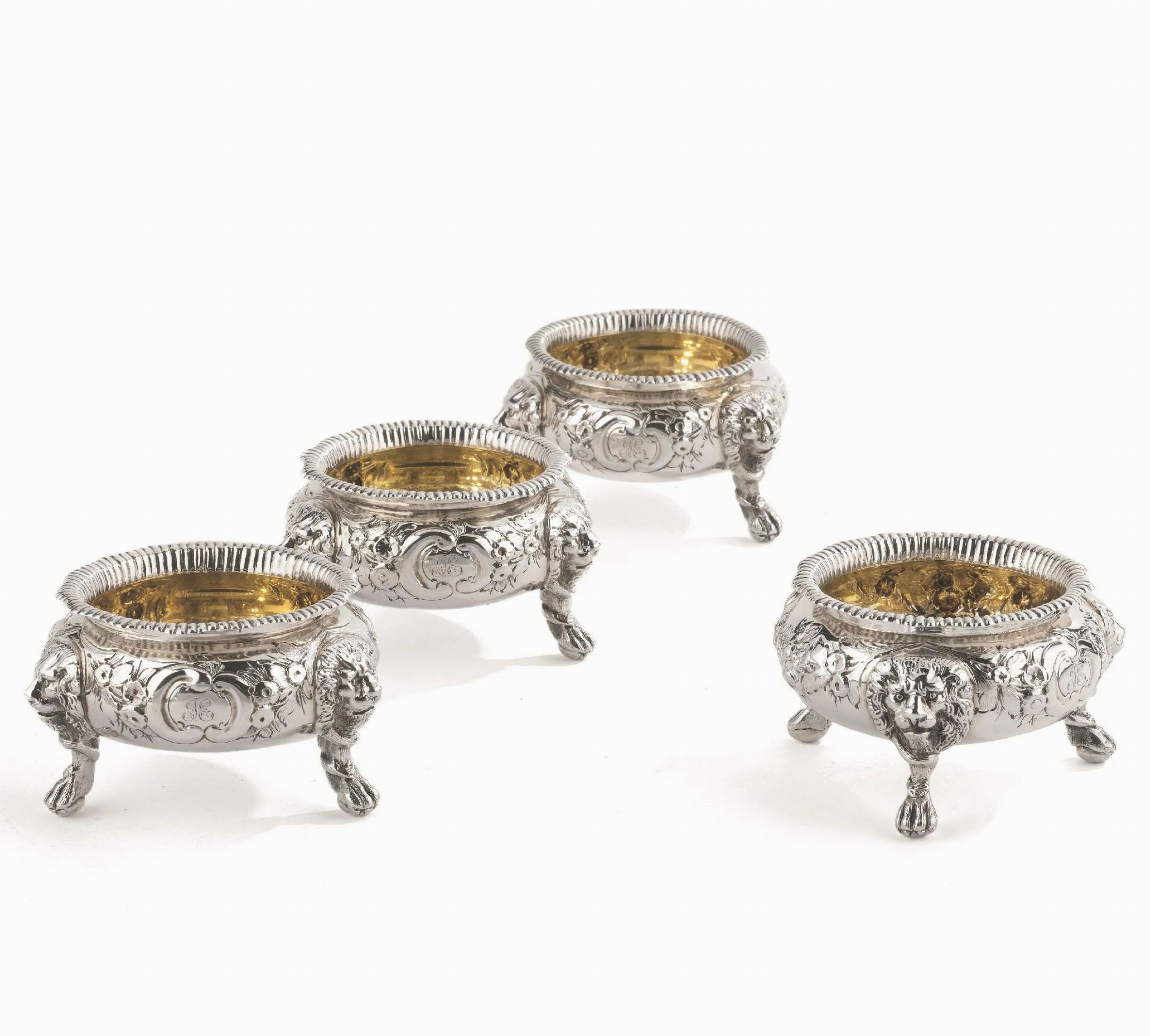 QUATTRO SALIERE, LONDRA, 1895, ARGENTIERE CHARLES STUART HARRIS