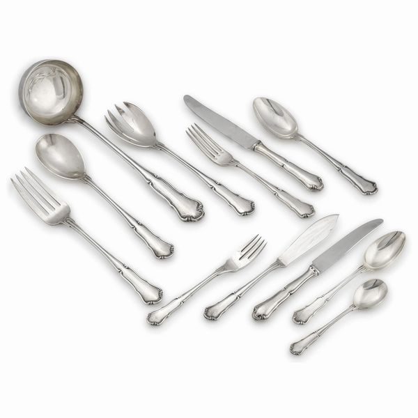 SERVITO DI POSATE, BOLOGNA, PRIMA METÀ SECOLO XX, ARGENTERIA CLEMENTI