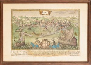 Genova, la Liguria e la Corsica sono i perimetri che delimitano l’ambito di questa collezione, frutto della passione di un genovese profondamente innamorato della sua terra. Amore, passione e collezionismo sono però attività puramente conoscitive, dove al piacere estetico non può mai disgiungersi quello per lo studio, la conoscenza e l’analisi filologica. In tal senso, questa raccolta si pone come un’indagine diacronica dello sviluppo dell’immagine di Genova e del Genovesato nel corso dei secoli, a partire dalle prime essenziali rappresentazioni a stampa di fine Quattrocento per arrivare alla cartografia più sicura e matura di fine Cinquecento e soprattutto di metà Seicento: un’indagine accurata volta a cogliere la creazione di una rappresentazione dinamica del territorio nel tempo, ricca di particolari in continua evoluzione. Il numero delle carte, l’accuratezza del disegno e la bellezza delle incisioni pervenute sino a noi testimoniano l’importanza della Liguria e di Genova durante i secoli. L’aspetto cartografico si unisce alla passione estetica per la propria città nell’ampia sezione dedicata all’immagine di Genova nei secoli, un’immagine che va dalle affascinanti vedute a volo d’uccello prese dal mare sino alle più specifiche e analitiche immagini dei suoi celebri monumenti e palazzi. Divagazione, ma non troppo, è quella rappresentata dalle stampe e cartine raffiguranti la Corsica, agli occhi dei genovesi da sempre una propaggine naturalmente riconducibile al Genovesato. Della Corsica qui si presentano alcune tra le più antiche e rare rappresentazioni dell’isola, vista con orientamento orizzontale e verticale, sospesa tra Liguria e Sardegna quasi a voler idealmente congiungere territori che rappresentano anche storicamente un unicum.