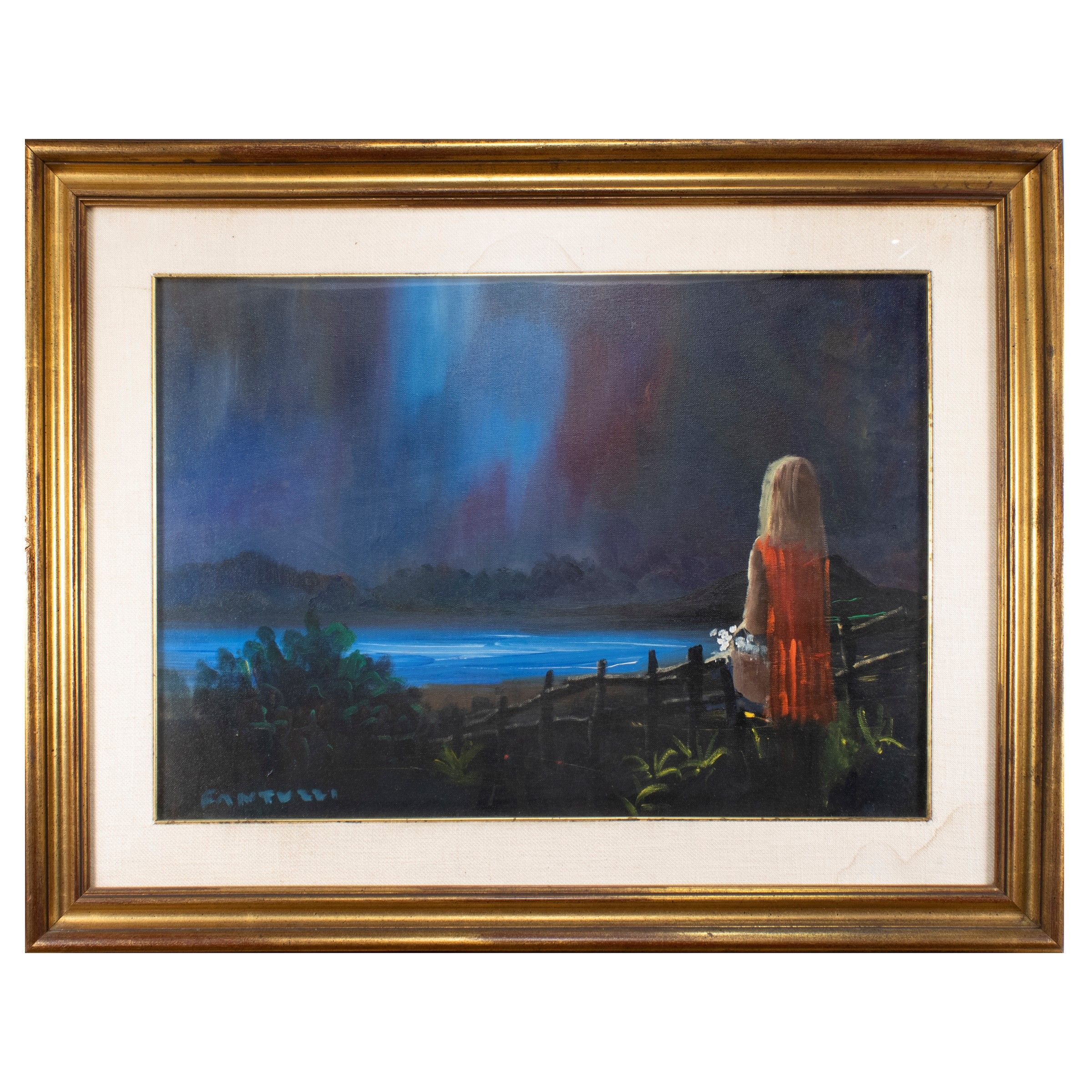 Modena 1909 - Verona 1987 'Ragazza in riva al lago', olio su tela, firmato in basso a sinistra, firmato sul retro, entro cornice