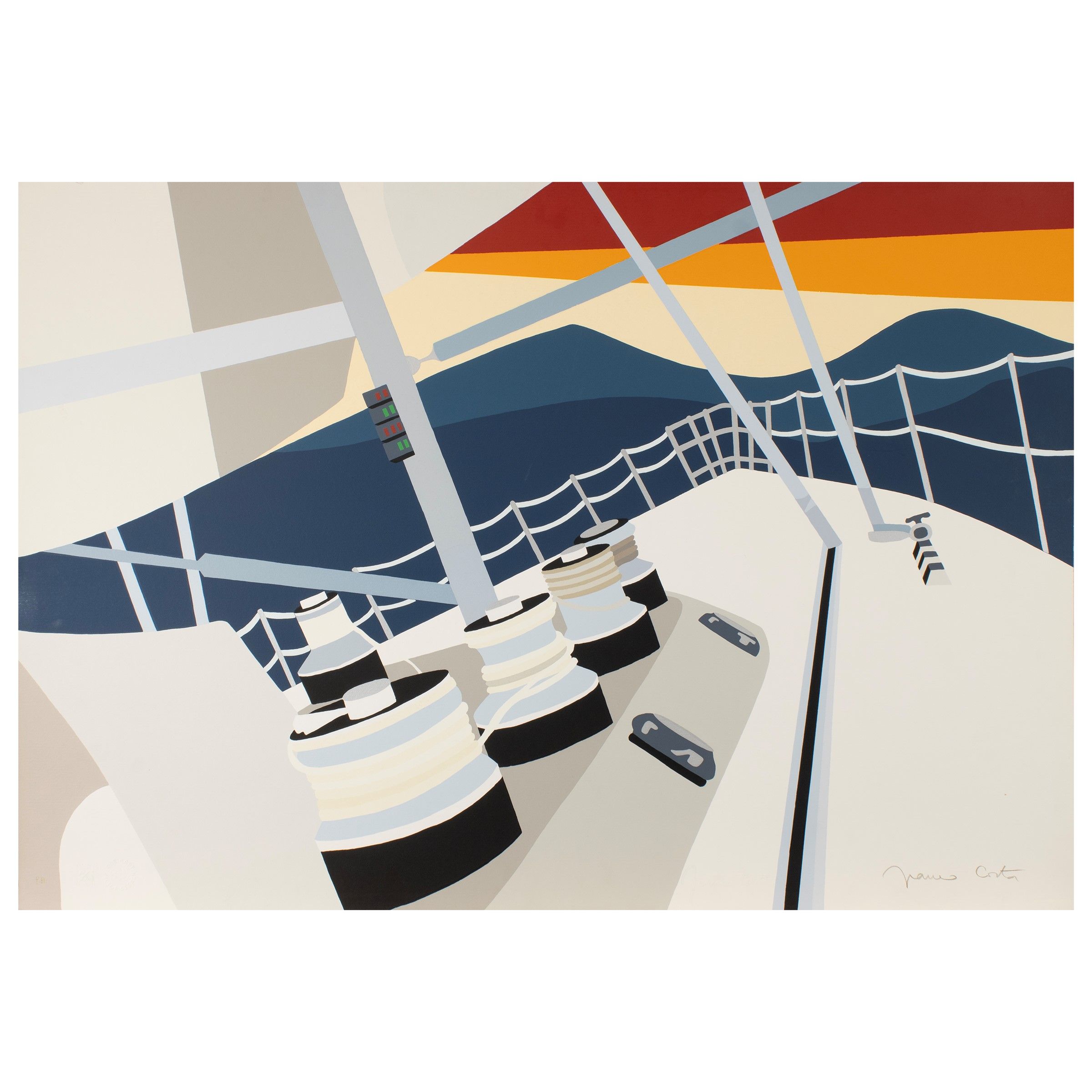 Roma 1934 - 2015 'Spinnaker Reach at Down', 1990, serigrafia a colori, es. p.a., firmata a matita in basso a destra, timbri a secco Rubinart Victor Debach; Stamperia Grafica Artistica Magenta