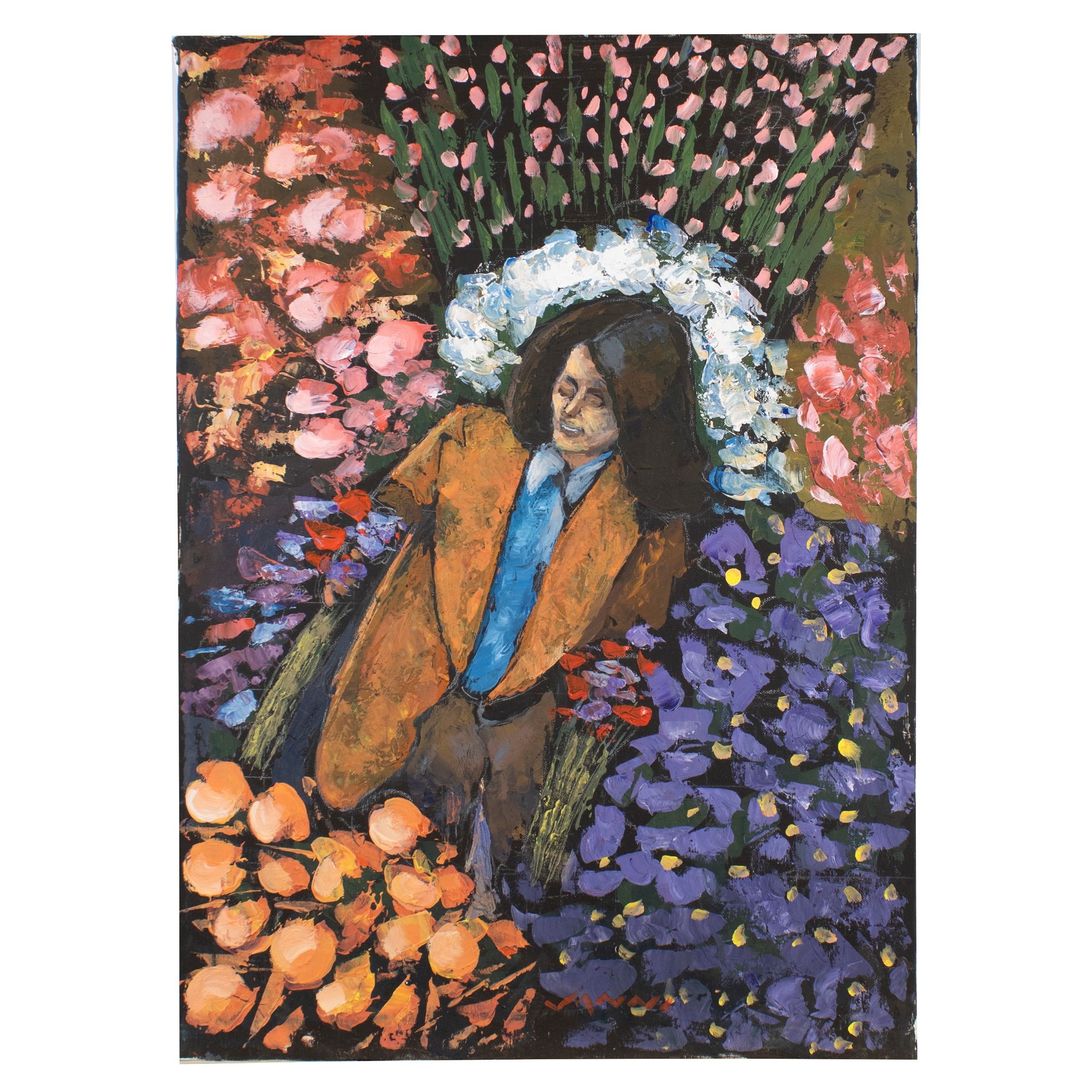 Terzone di Leonessa 1925 - Roma 2002 'Donna tra i fiori', olio su tela, firmato in basso al centro, firmato sul retro, entro cornice
