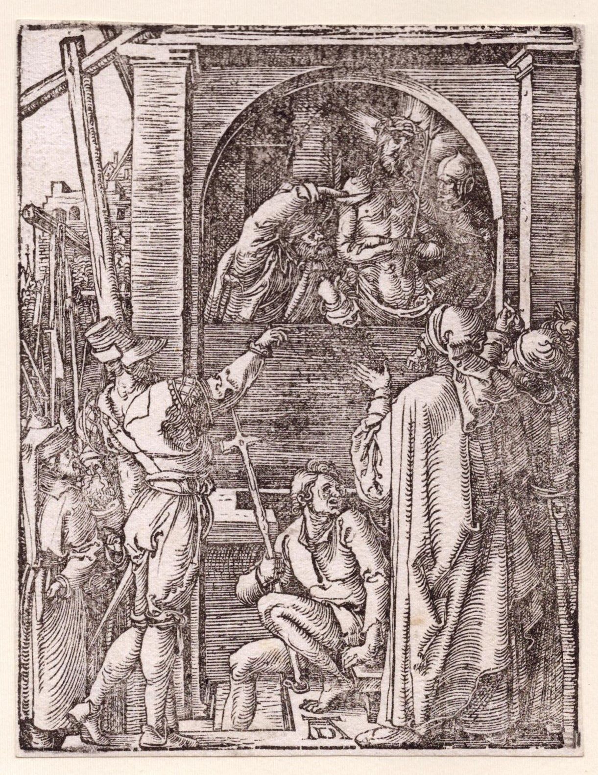 Dalla serie 'La Piccola Passione'. Xilografia, 128 x98 mm. Meder 144. Impressione della terza edizione (Meder IIIb/c?), stampata su carta vergata senza filigrana. Esemplare con piccoli margini, in ottimo stato di conservazione.