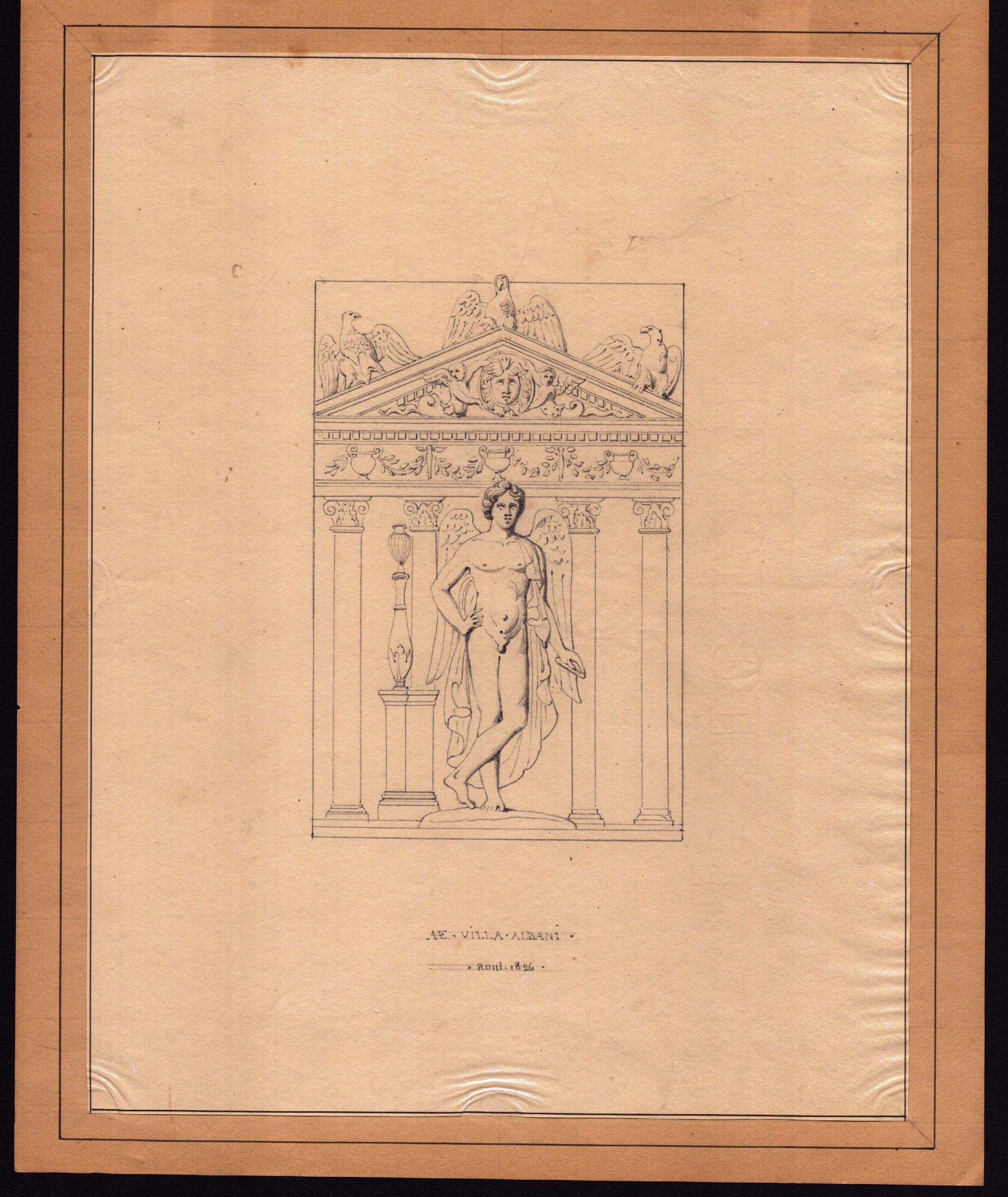 Statua di Eros di fronte al Tempio di Diana a Villa Albani, Roma