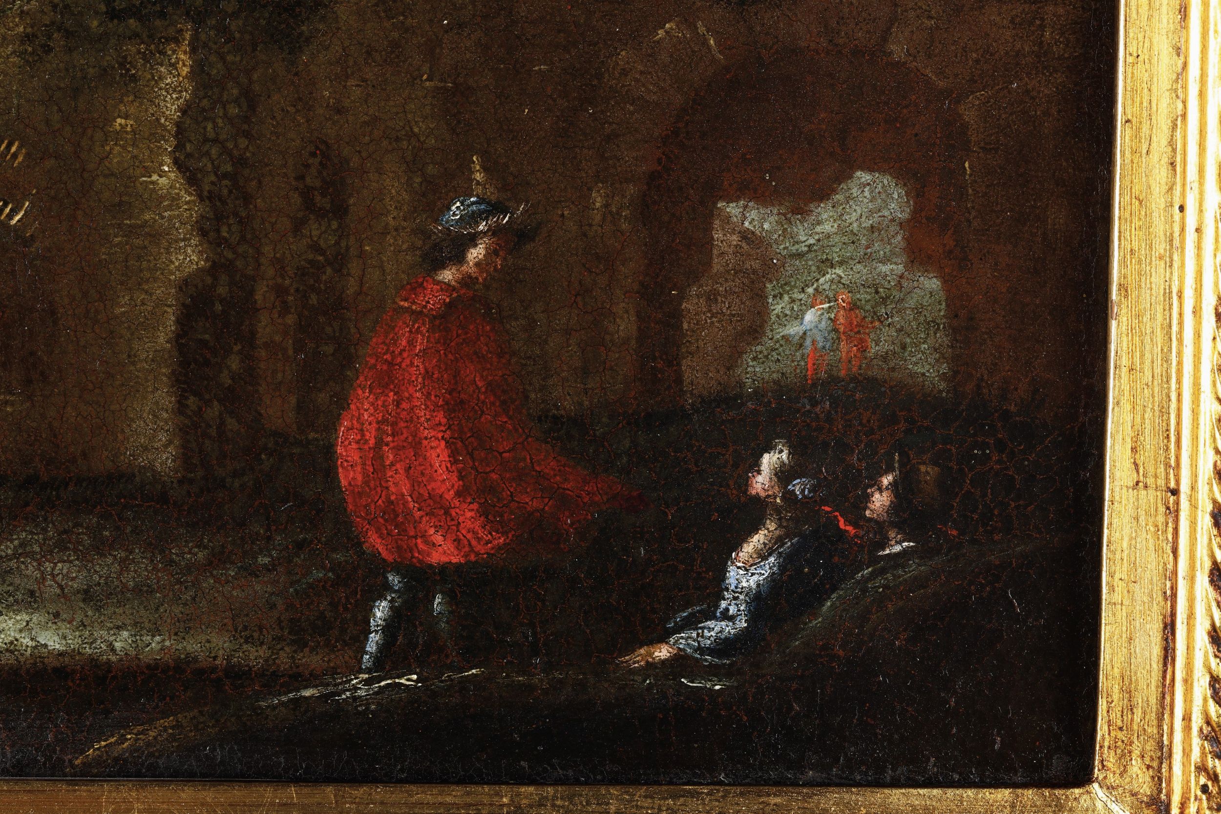 Scuola del XVII secolo Paesaggio con architetture e figure
