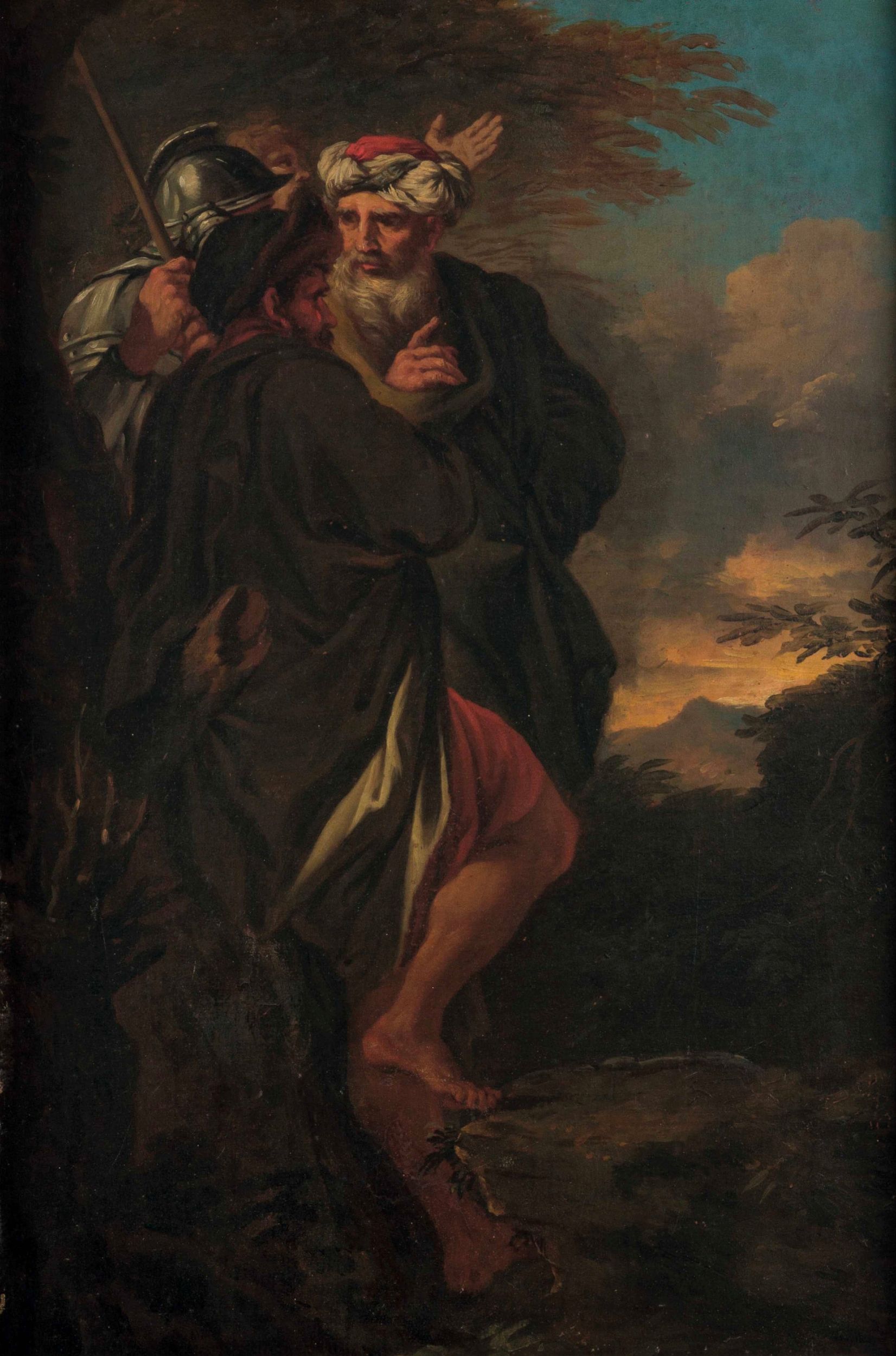 Scuola del XVIII secolo Tre figure entro paesaggio
