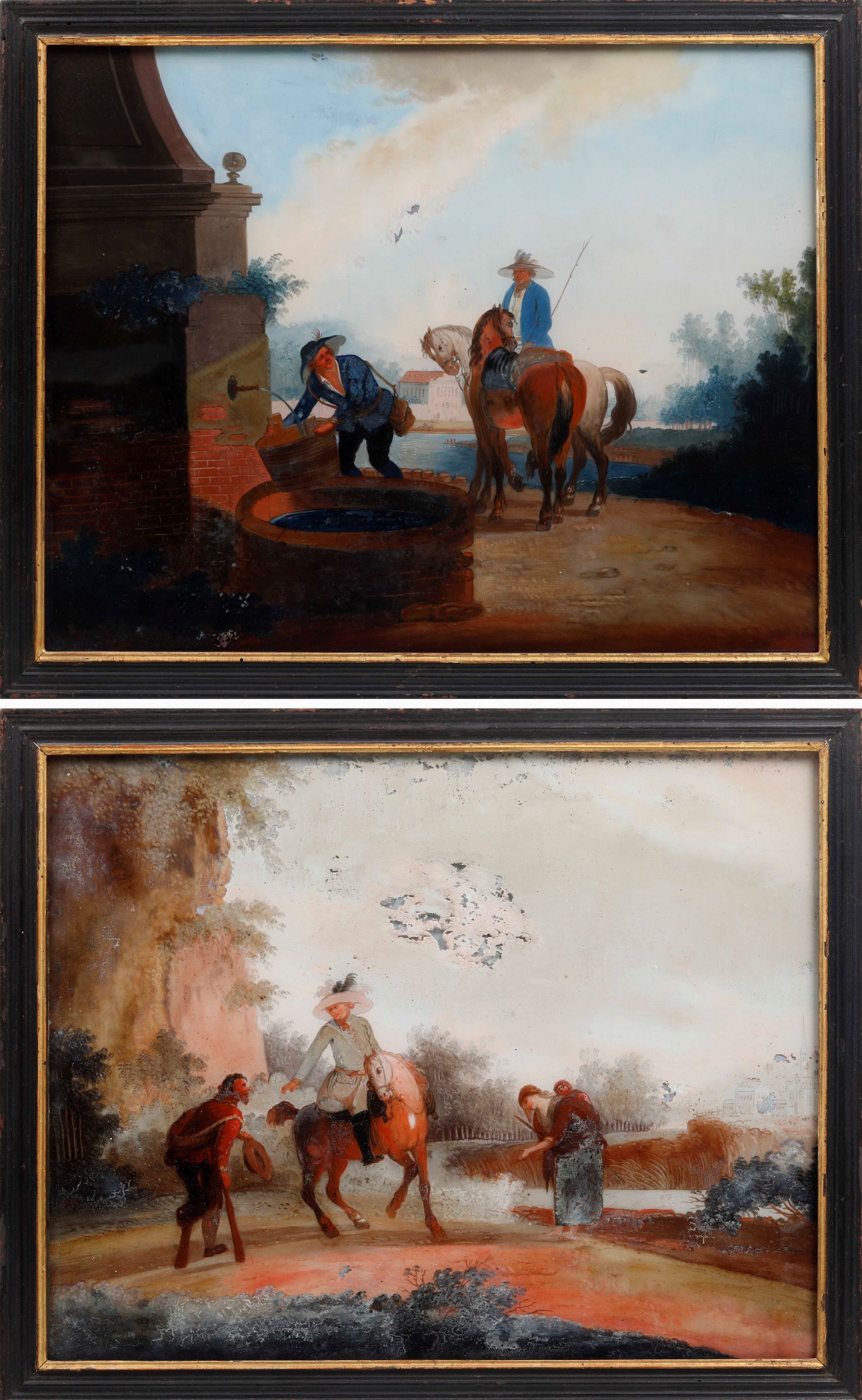 Scuola veneta del XVIII secolo Paesaggi con contadini e viandanti