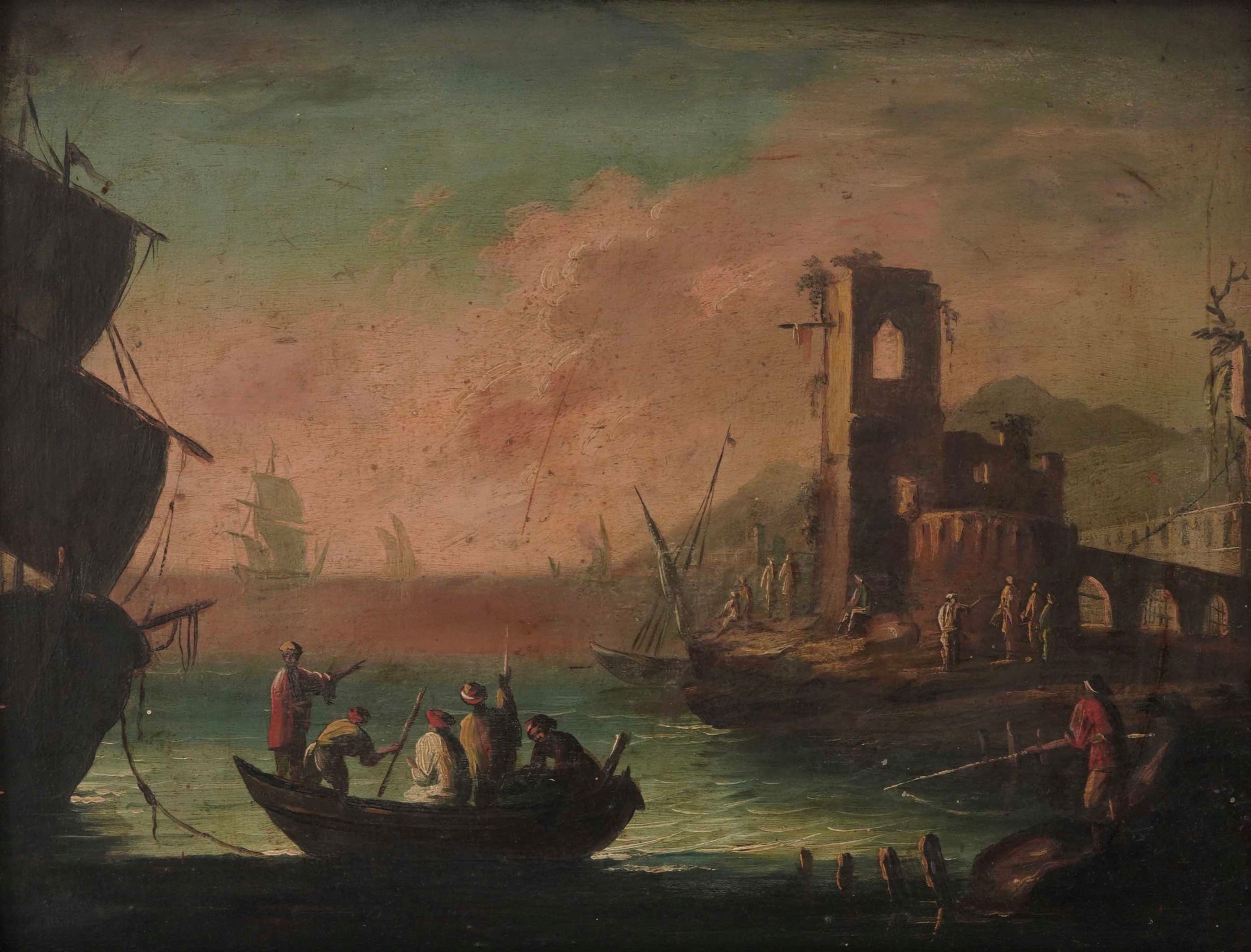 Veduta costiera con imbarcazioni e architetture