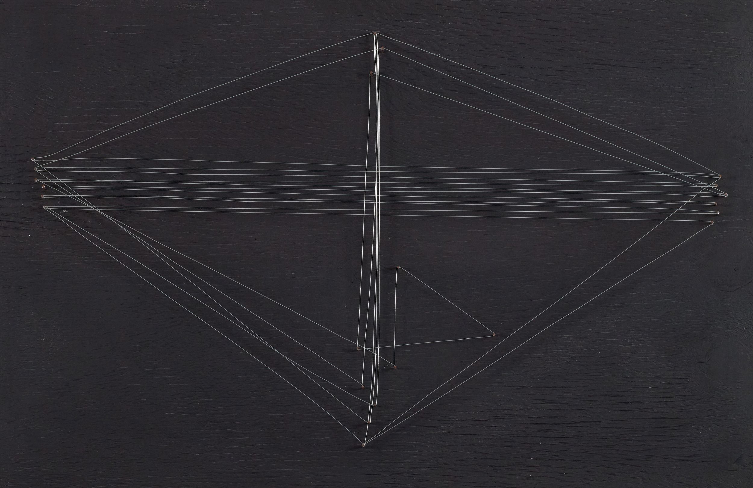 Olio su tavola con chiodi e fili metallici, cm. 40x61