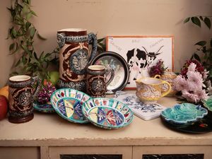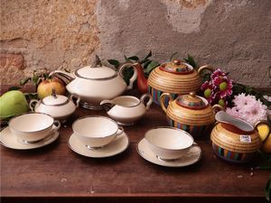 h da cm 19 a cm 29 XIX/XX secolo tra cui una oliera in cristallo corredata da coppia di ampolle, una teiera in [..]