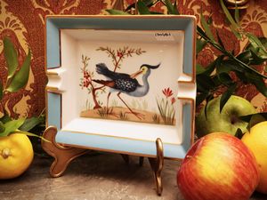 h cm 4x19,5x16,5 Francia, XX secolo decorato con volatile e bordo azzurro con lumeggiature dorate, corredato da [..]