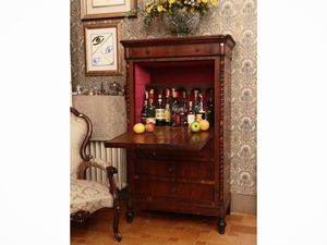 h cm 156x91x49 metà del XIX secolo un cassetto sotto il piano, sportello a calatoio a celare scarabattolo con [..]