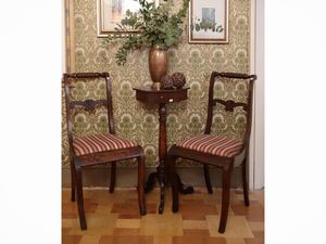 h cm 92 metà del XIX secolo schienali centinati, gambe leggermente mosse, sedili rivestiti in tessuto giallo, [..]
