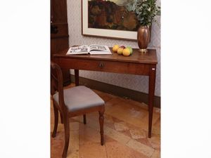 h cm 75x58x37 seconda metà del XIX secolo due cassettini nella fascia, sostegni torniti con piede a doppia voluta [..]