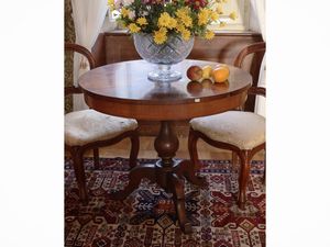 h cm 78x92 metà del XIX secolo piano circolare intarsiato con filettature a formare rosoni, sostegno centrale [..]