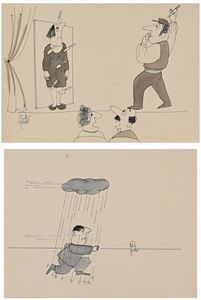 Entrambe misurano cm 20x26. Ognuna è firmata. China e acquarello su carta