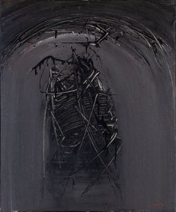 scultura in ferro, filo di ferro e gesso, h. cm. 130x100x23 1998